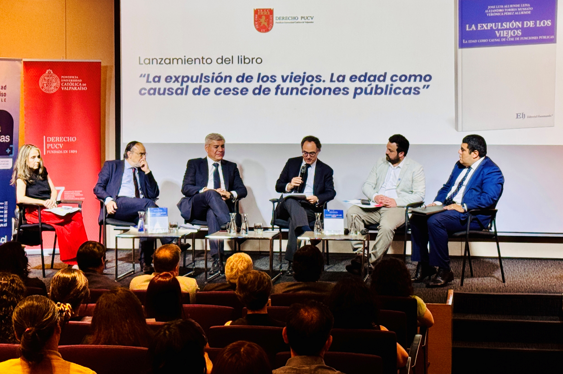 En la capital se realizó el lanzamiento del libro “La expulsión de los viejos. La edad como causal de cese de funciones públicas”, de los académicos Alejandro Torres, director del Magíster en Finanzas de la Universidad de Valparaíso; José Luis Alliende, académico de la Escuela de Derecho de la Pontificia Universidad Católica de Valparaíso (PUCV), y Verónica Pérez, abogada de la Pontificia Universidad Católica (PUC).
