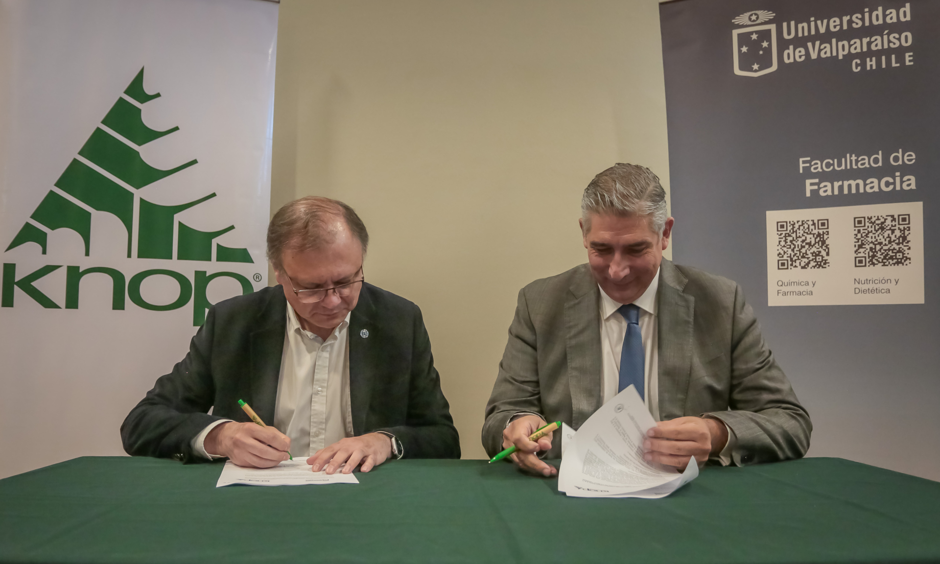La firma del convenio se realizó en dependencias de Knop Laboratorios y contó con la presencia de autoridades universitarias y representantes del directorio de la empresa. Tras la ceremonia, la delegación de la Universidad de Valparaíso fue invitada a recorrer las instalaciones administrativas y el museo institucional, donde se exhibe la historia centenaria de esta empresa pionera en medicina natural en nuestro país, con piezas vinculadas a su fundador, Reinaldo Knop, que dan cuenta de su evolución desde 1926. La visita incluyó los laboratorios de control de calidad y oficinas administrativas.