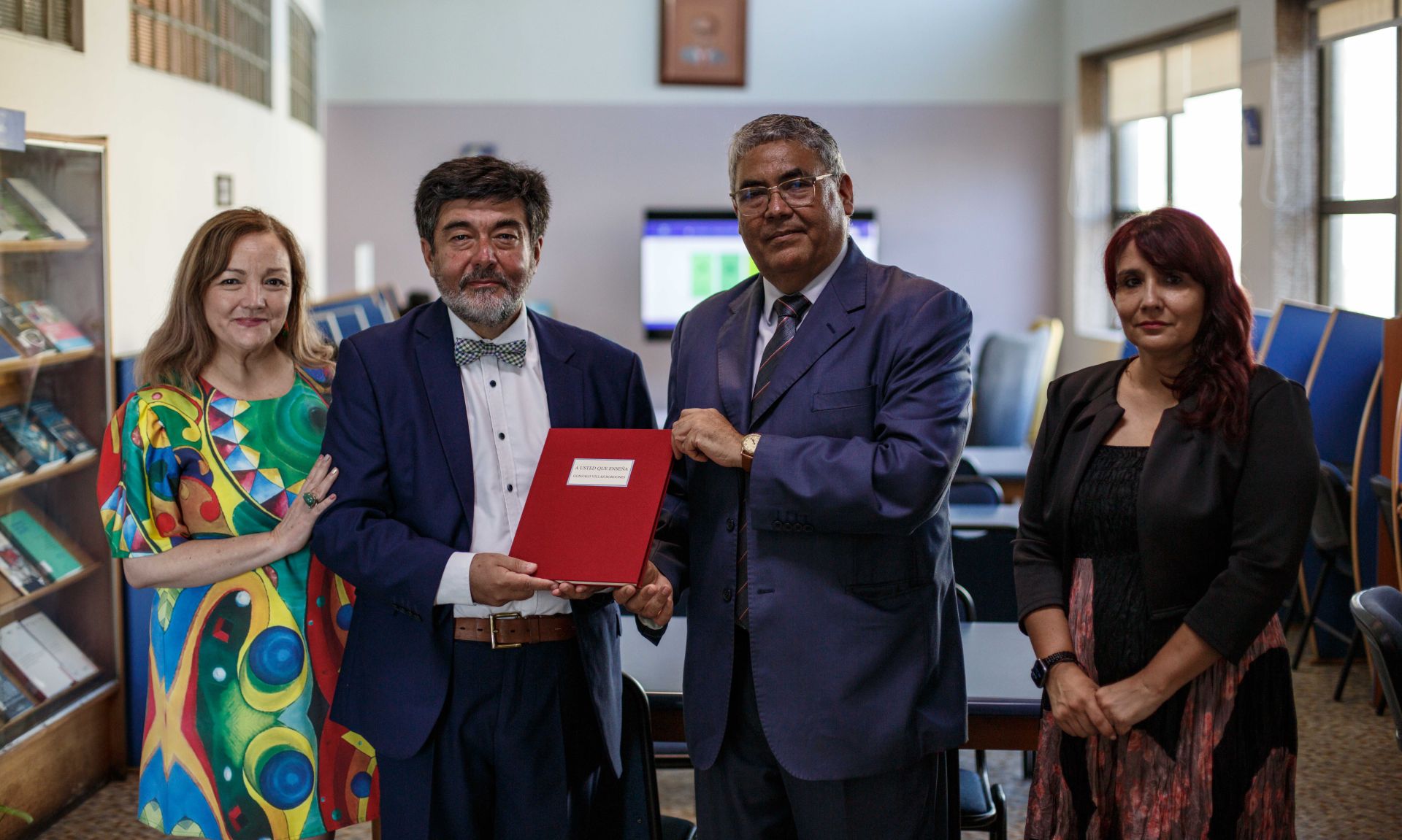 En esta línea, y en atención a su permanente vínculo con la unidad académica, el exestudiante volvió a la Escuela de Derecho para entregar en donación un ejemplar de la obra “A usted que enseña”, con el propósito de ponerla a disposición en su biblioteca para estudiantes, profesores y profesoras, como una forma de compartir un reconocimiento que trasciende generaciones.