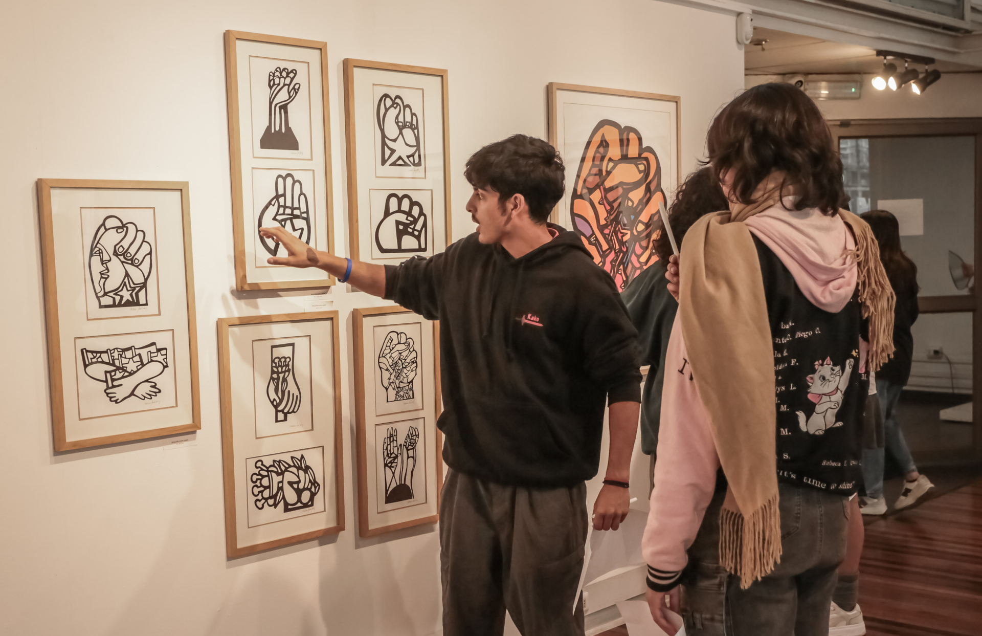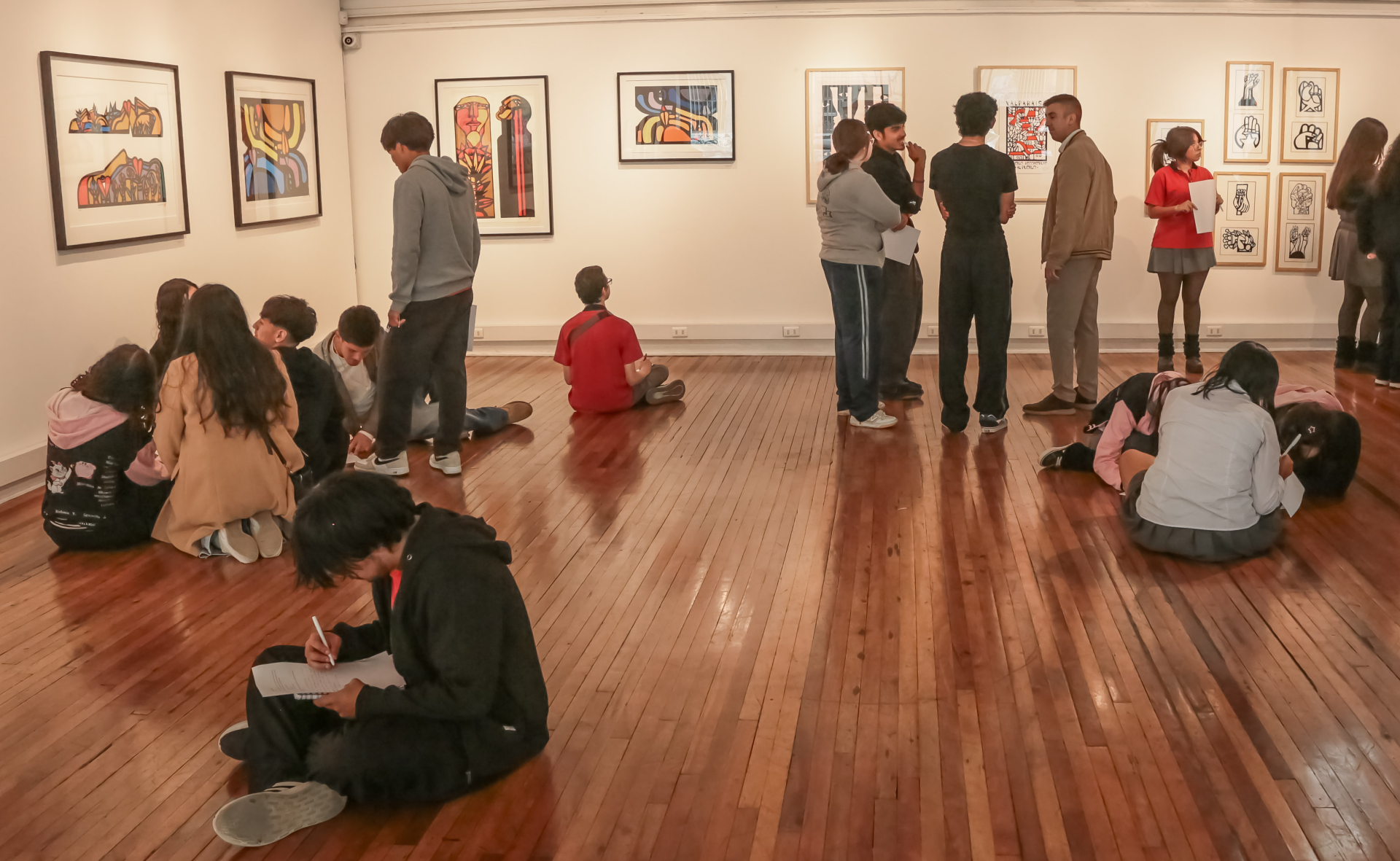 Siendo un establecimiento viñamarino, fue un plus realizar una visita a una sala de exposiciones en Valparaíso. “Siempre estamos yendo a nuestra comuna, a la sala Viña del Mar, al Rioja o al Palacio Vergara. Pero es importante abrirnos hacia otros espacios, y que vinieran a este lugar en particular es interesante porque venimos hablando mucho rato sobre ciertos contextos sociales que enmarcan expresiones artísticas, pero no solo en las artes visuales, sino que en todas las otras dimensiones de la sociedad. Hay libros que tienen que leer durante este año, hay contenidos que van a abordar en distintas asignaturas. Entonces, es un buen punto venir a hablar del ‘Mono’ González, de lo que fueron las Brigadas Ramona Parra, para luego ir contextualizando en otras asignaturas”.