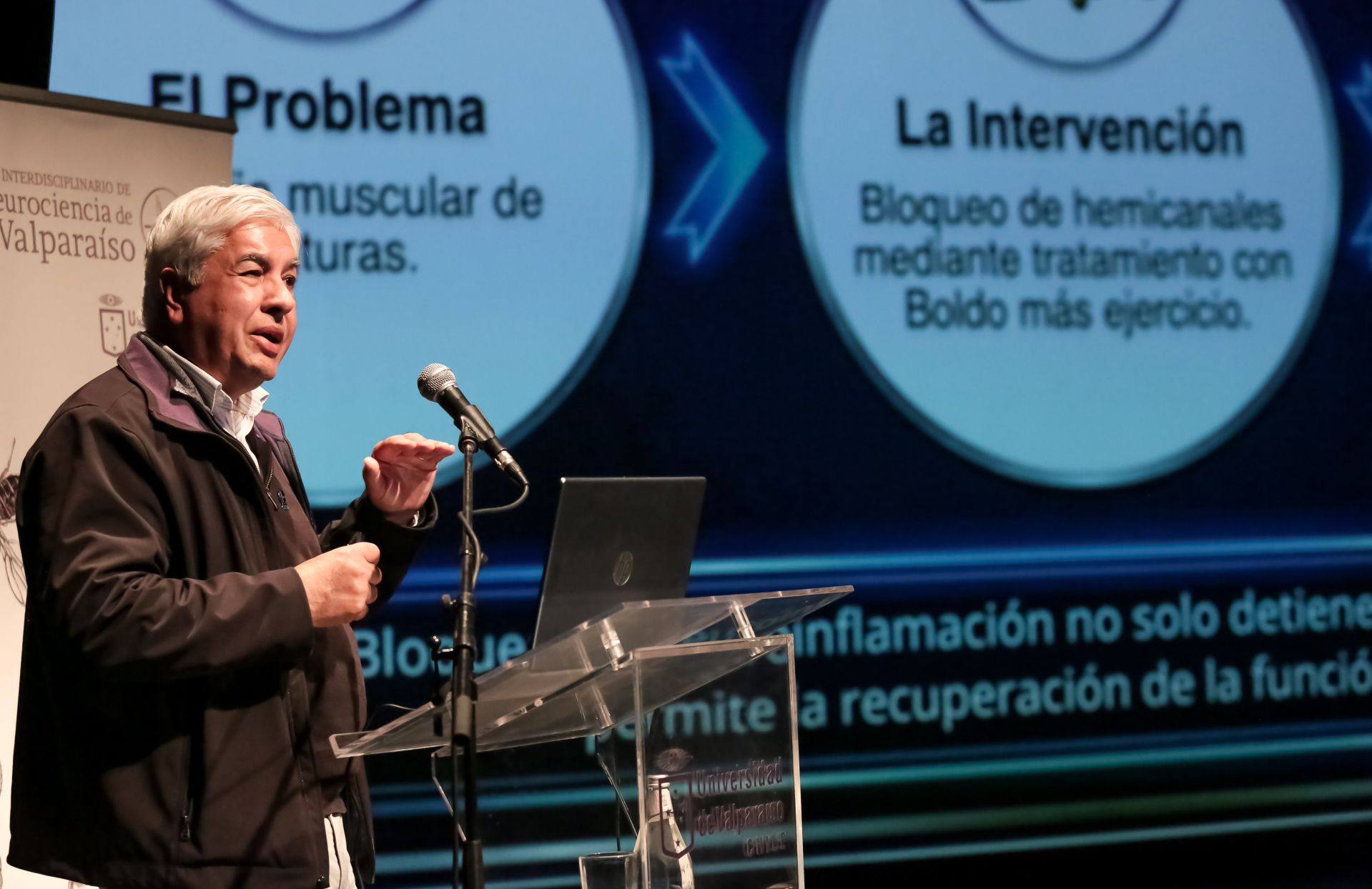 A su vez, el director del CINV, doctor Juan Carlos Sáez, quien presentó la conferencia “Neuroinflamación: de la ciencia básica a la salud pública”, afirmó: “Agradezco profundamente la inversión que el Estado realiza en ciencia, aun cuando esta sigue siendo insuficiente. Gracias a ese apoyo hemos logrado avanzar desde investigaciones básicas, inicialmente muy acotadas, hacia aplicaciones con impacto directo en pacientes. Estos avances nos permiten retribuir al país contribuyendo a mejorar la calidad de vida de las personas, no solo en el caso de enfermedades poco frecuentes —como la que hoy pudimos evidenciar en dos pacientes que han recuperado su movilidad—, sino también en patologías de alta prevalencia en Chile, como la diabetes o la depresión. En este contexto, es posible reducir niveles de discapacidad, evitar complicaciones severas —como amputaciones en pacientes diabéticos— y, en consecuencia, generar beneficios tanto en términos de salud pública como de bienestar social”.