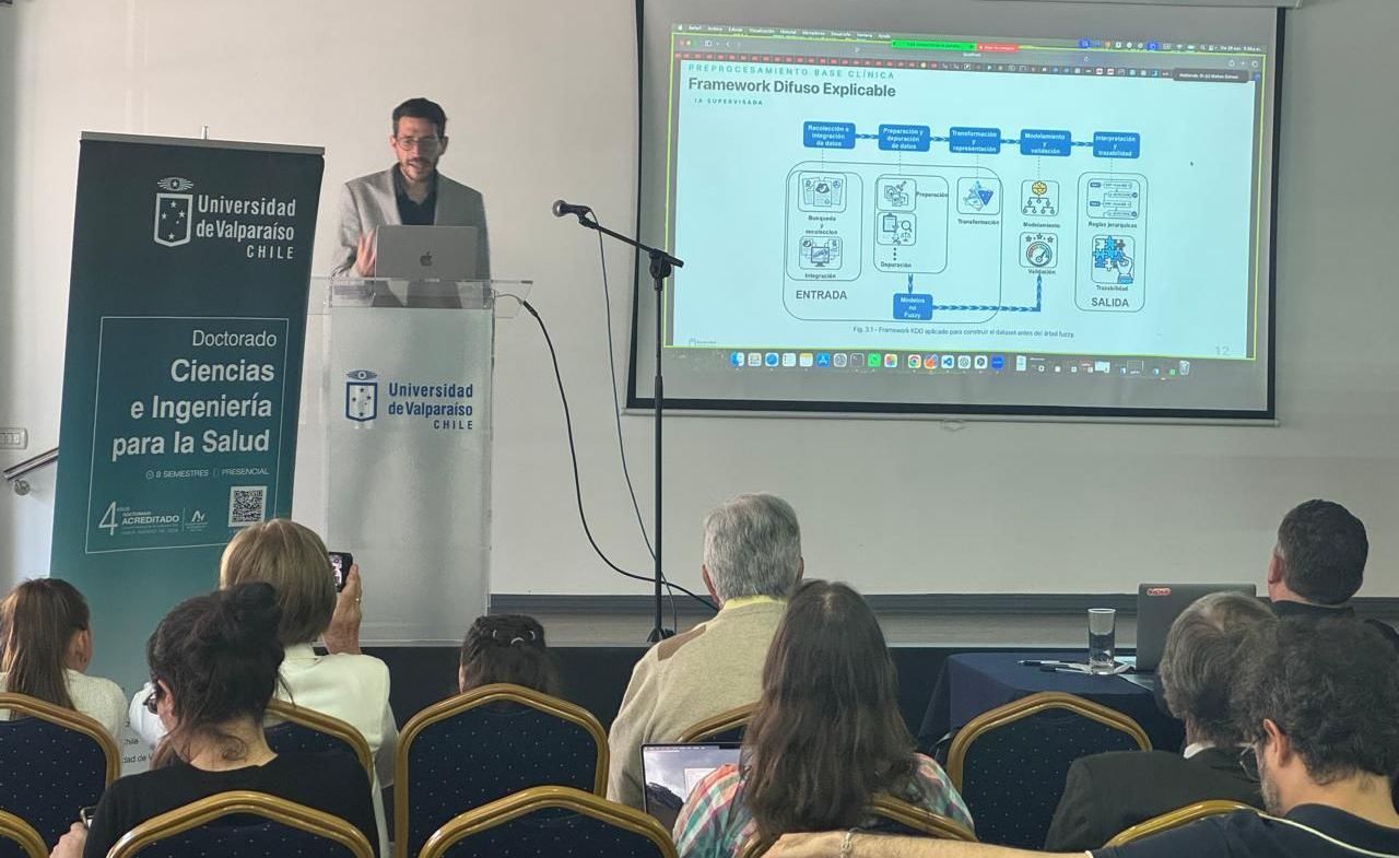 El investigador defendió exitosamente el proyecto “Modelo híbrido explicable basado en inferencia difusa para la caracterización hemodinámica y clasificación del riesgo en los trastornos hipertensivos del embarazo”, en el marco del Doctorado en Ciencias e Ingeniería para la Salud de la Universidad de Valparaíso, bajo la guía del doctor Rodrigo Salas, de la Escuela de Ingeniería Biomédica, y la coguía del doctor Fabián Pardo, perteneciente a la Escuela de Medicina del Campus San Felipe.