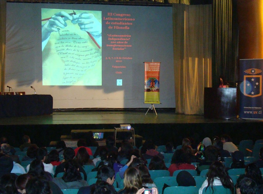 Más de 300 estudiantes de carreras de Filosofía de la Quinta Región, el país y el extranjero, se dan cita hasta este viernes en Valparaíso, con motivo del Congreso Latinoamericano de Estudiantes de Filosofía “¿Latinoamérica independiente? 200 años de transformaciones sociales”, actividad organizada por estudiantes de la Universidad de Valparaíso, la UPLA y la PUCV. La ceremonia inaugural tuvo lugar en el Aula Magna de la Escuela de Derecho de la UV.