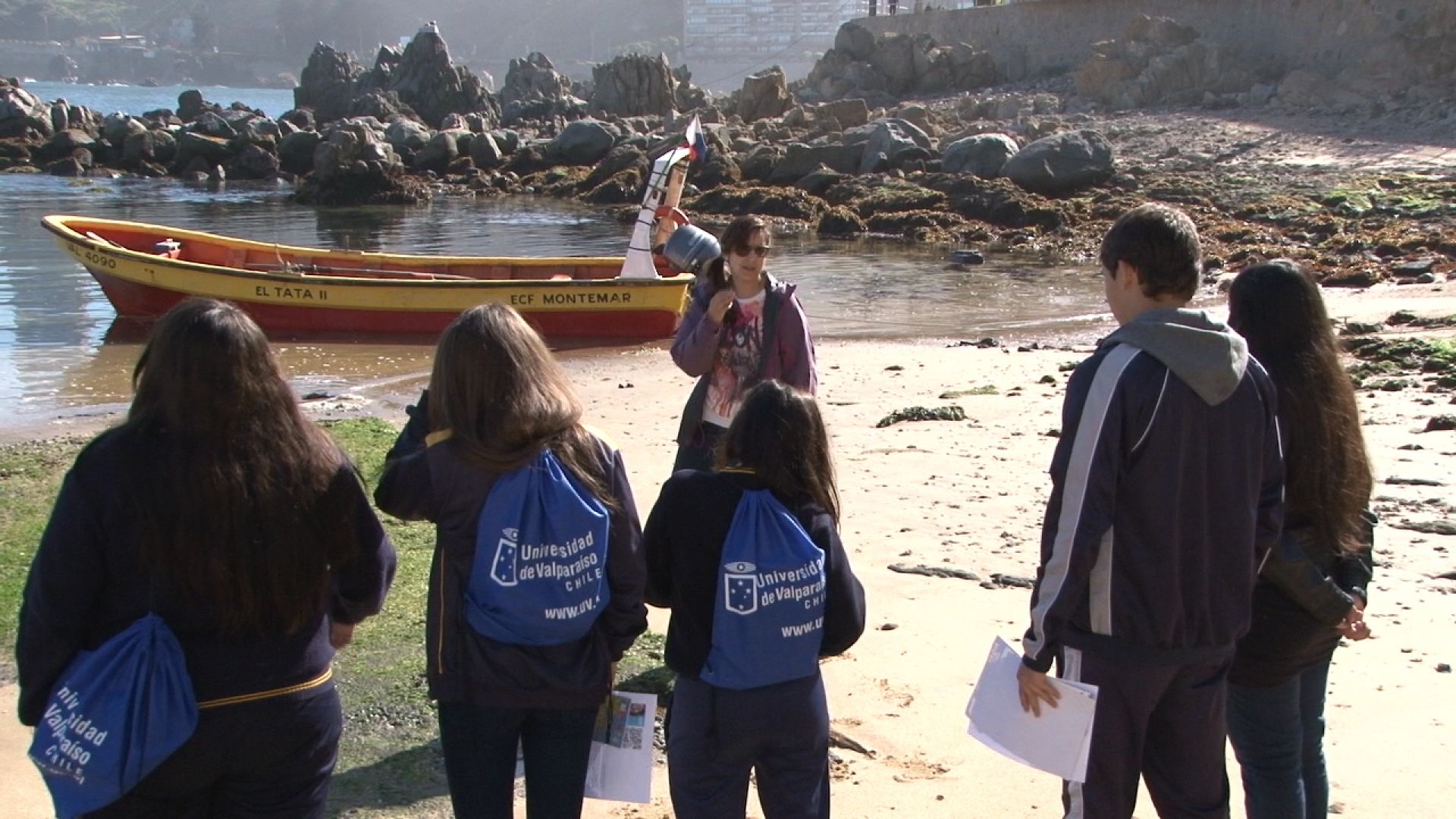Tras la bienvenida, de inmediato salieron a terreno, para estudiar el entorno del área marina protegida de Montemar. En esta primera sesión el objetivo era observar la distribución que presenta la flora intermareal, reconocer el patrón universal de zonación identificado por científicos y recolectar las especies más representativas.