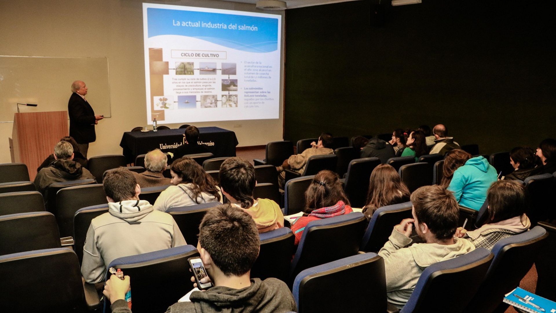 En el ciclo de conferencias llevado a cabo en la Escuela de Biología Marina también participaron como conferencistas Marcela Lara, de Sernapesca, y el consultor en acuicultura Alfredo Valenzuela.