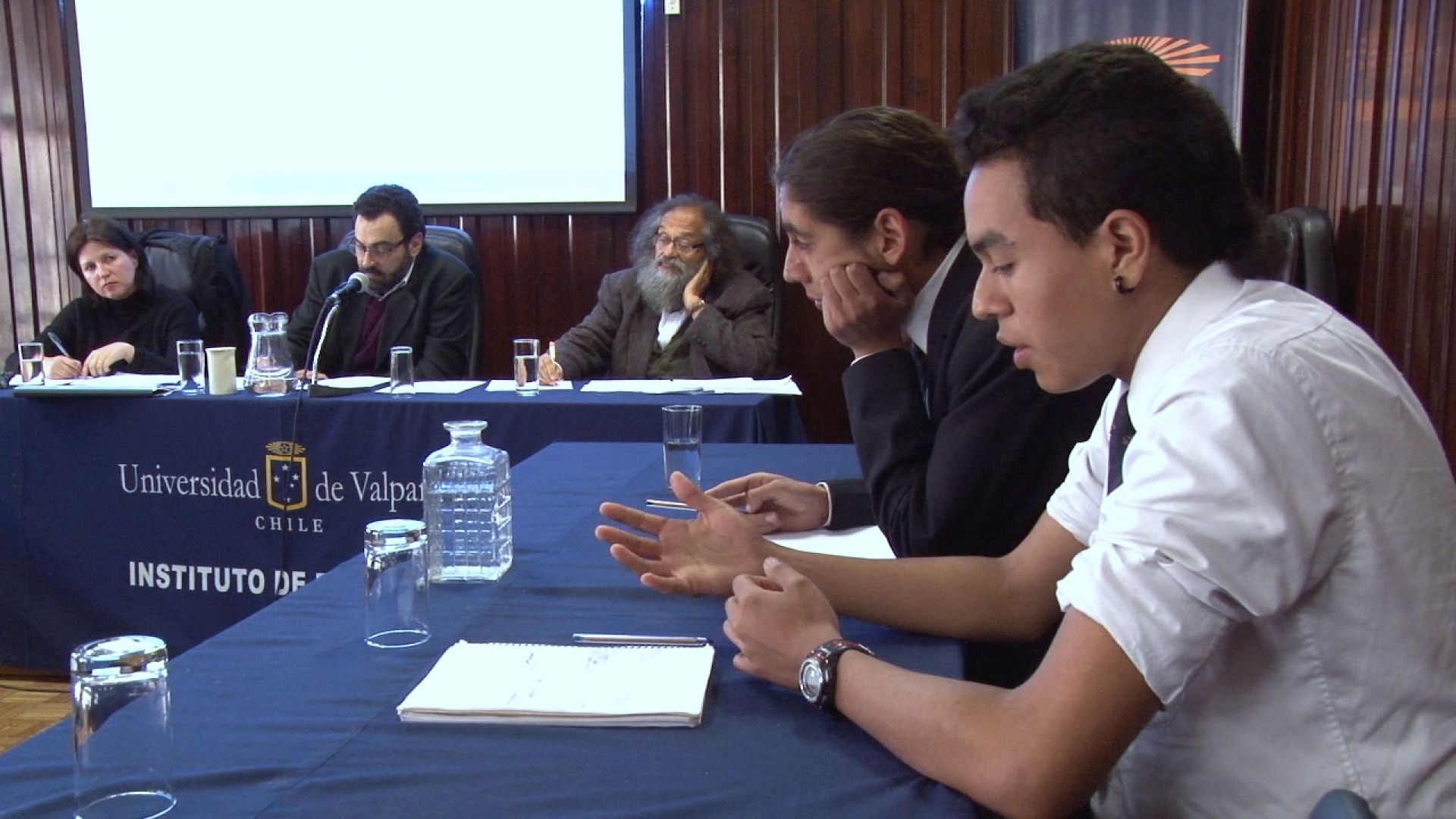 Martín Jiménez, integrante del equipo del Liceo Valentín Letelier, señaló que la competencia “se nos hizo algo difícil en principio, porque la primera fase es escrita. Es algo muy nuevo en cuanto a lo que es debate: debate normalmente se basa mucho en un argumento lógico preescrito; aquí te llaman a abstraerte, razonar, pensar en nuevas ideas. Es bastante interesante estar aquí, y es un honor estar aquí sobre todo”.