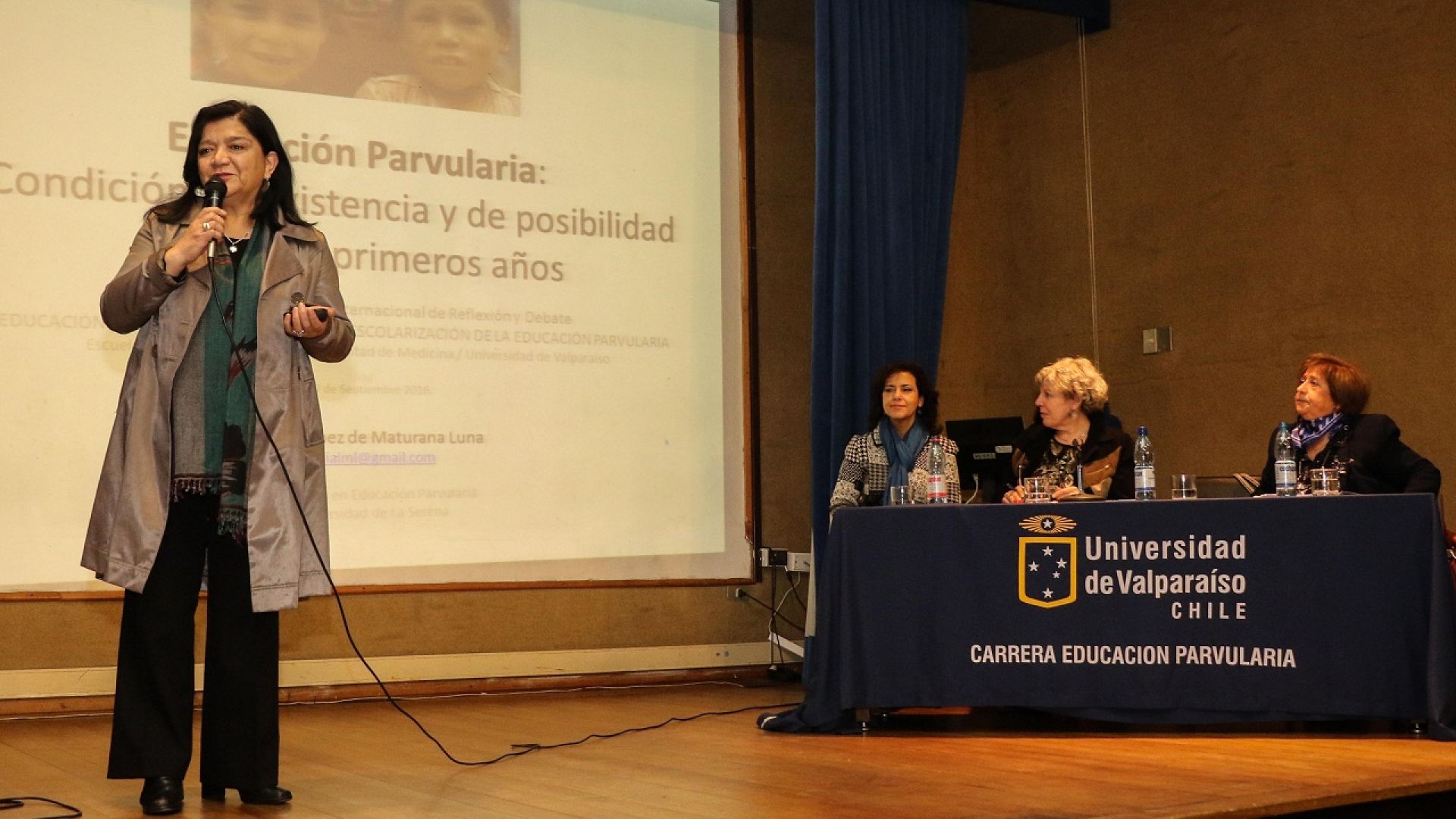 Su intervención fue la introducción perfecta para el panel ¿Hacia dónde se dirige la Educación Parvularia?, en el que participaron las académicas y especialistas Mónica Manhey, jefa de carrera de Pedagogía en Educación Parvularia de la Universidad de Chile; Silvia López de Maturana, de la Universidad de La Serena; Selma Simonstein, presidenta Chilena de la Organización Mundial para la Educación Preescolar, y Marina Grabivker, de la Escuela de Educación Parvularia de la UV, quien ofició de moderadora.