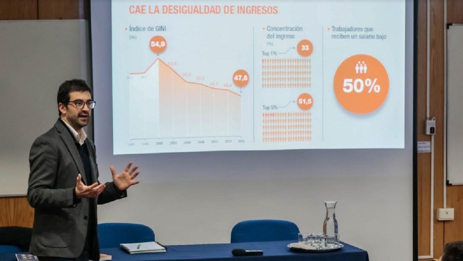 En su presentación, el decano de la Facultad de Ciencias Económicas y Administrativas, Óscar Fariña, señaló que este tipo de actividades constituyen una oportunidad para la Facultad y la Universidad “para colaborar en la discusión académica que apunte a reducir las brechas que presenta el estudio Desiguales. Iniciar su lectura y difusión es una puerta de entrada para acentuar nuestra misión y visión como institución que promueve la inclusión, pluralidad y participación”.