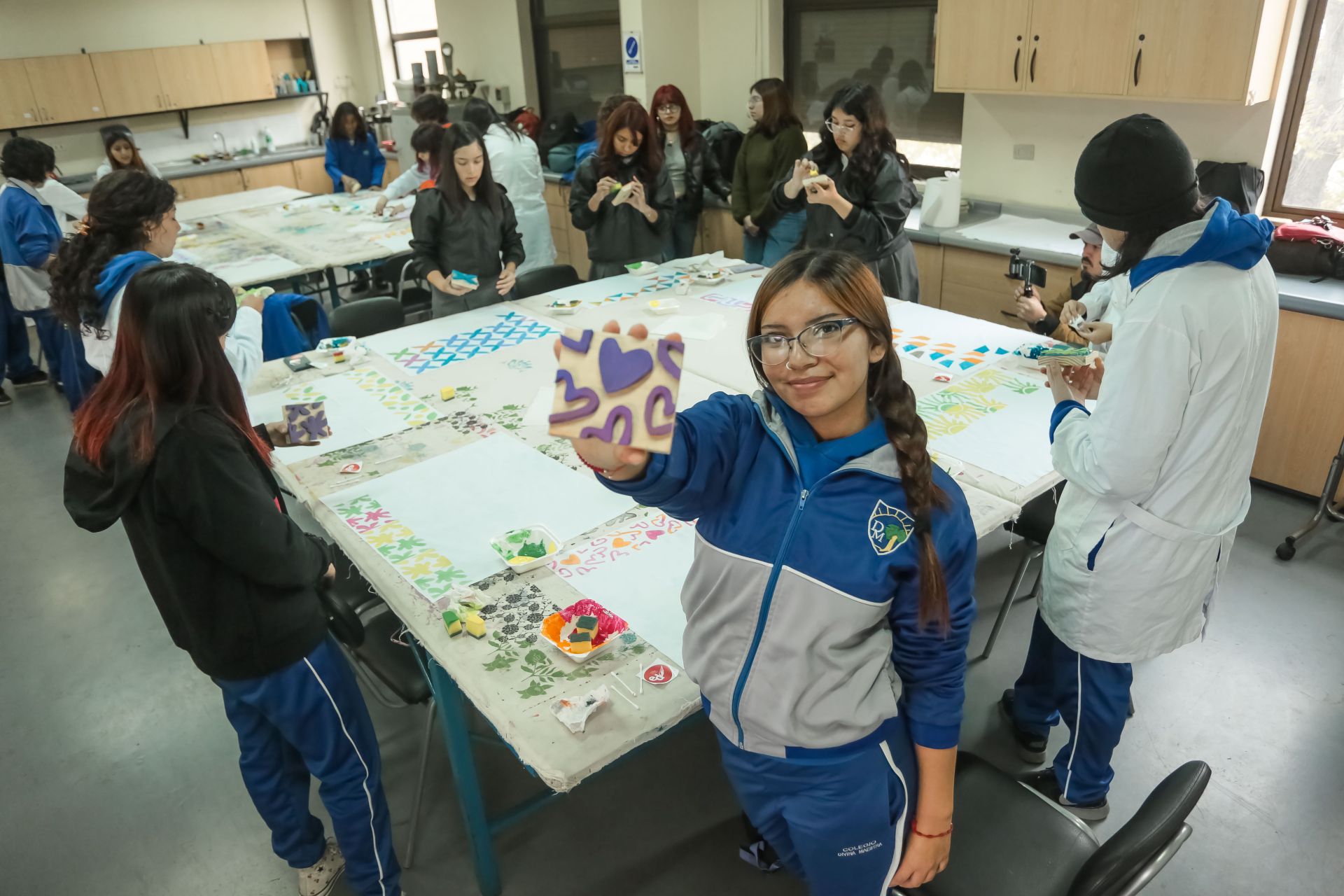 Estudiantes del Colegio Divina Maestra visitan Escuela de Diseño UV en marco del concurso "Abrigarte para el frío con las artes"