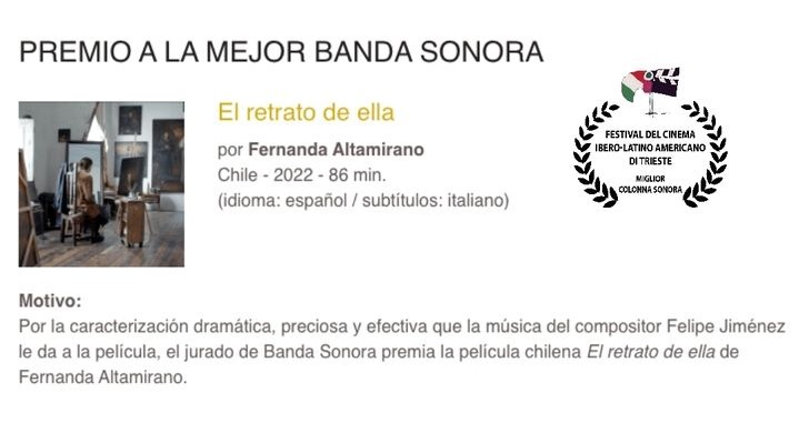 Es así como un hito importante en su carrera musical se marcó en diciembre el año recién pasado, ocasión en que gracias a sus composiciones para la película “El retrato de ella”, la cinta obtuvo el premio a Mejor Banda Sonora en el Festival de Cine Ibero Latino Americano de Trieste, en Italia.